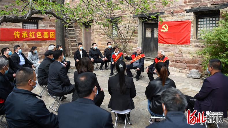 4月1日,在沙河市柴关乡王硇村抗日独立营旧址,党龄50年以上的三位老党员刘翠的(左)、刘翰生(中)和周西山,为各村新当选的支部委员讲历史、忆传统,传好奋斗“接力棒”。河北日报记者赵永辉摄