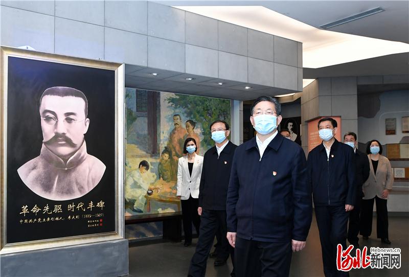 4月27日,在李大钊同志英勇就义94周年纪念日到来之际,省委宣讲团团长、省委书记、省人大常委会主任王东峰专程赴唐山市乐亭县李大钊纪念馆和李大钊故居,深情缅怀李大钊同志,深入开展党史学习教育,向基层党员干部代表作专题宣讲报告。这是王东峰在乐亭县李大钊纪念馆,参观李大钊同志生平事迹展等。 河北日报记者赵威摄