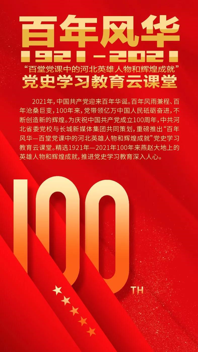 与长城新媒体集团联合主办、共同推出了“百年风华——百堂党课中的河北英雄人物和辉煌成就”党史学习教育云课堂。