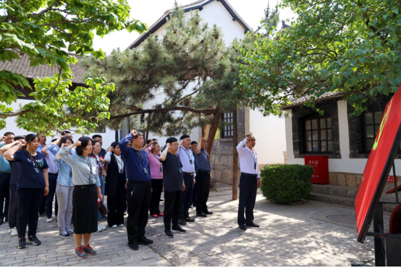 5月9日下午,在涉县八路军一二九师旧址,全体党员脚踏革命热土,瞻仰刘伯承、邓小平等开国元勋巍然屹立的铜像,怀着无比崇敬的心情,向革命先辈敬献花篮、行鞠躬礼,深切缅怀他们的丰功伟绩,并面对鲜红的党旗重温入党誓词,砥砺信仰初心。