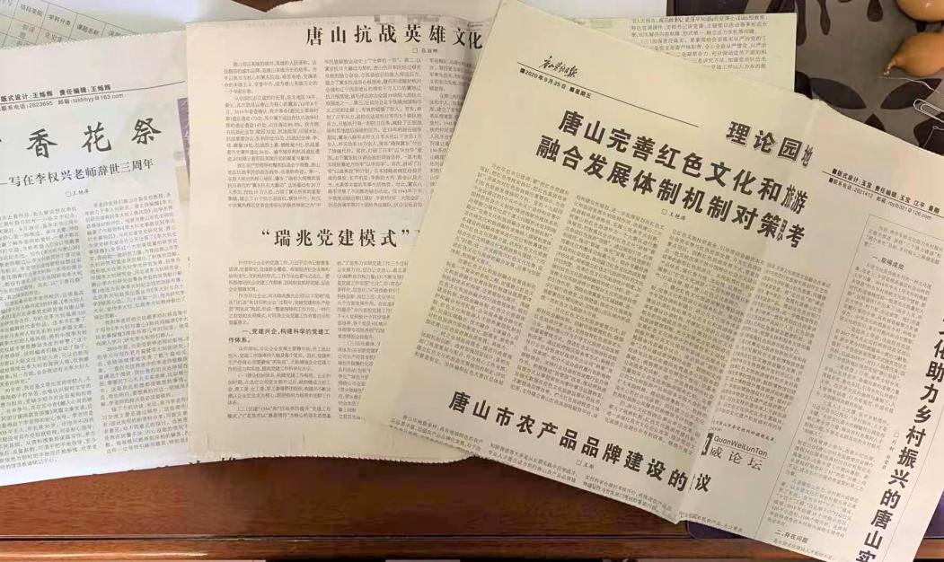 图为唐山市委党校发表在报刊上的科研成果。唐山市委党校供图