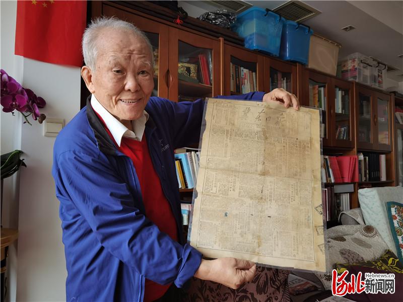 在冀东南下干部路福贵家中,老人展示一张1949年5月21日出版的《冀东日报》。 河北日报记者 王育民摄