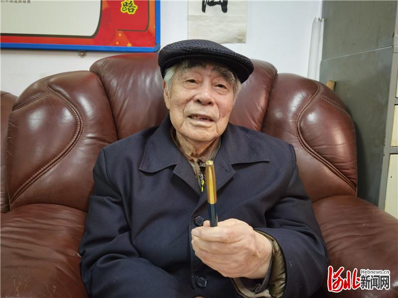 在湖南省长沙市,年近90岁朱静轩展示一支“金色帽”钢笔。这支钢笔是他南下到湖南获得的第一份荣誉。河北日报记者王育民摄