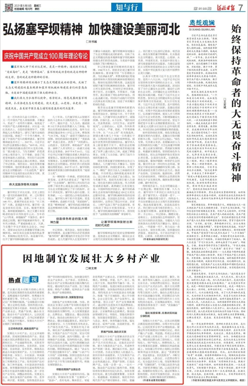 6月9日,省委党校(河北行政学院)经济学教研部副主任、教授祁文辉在《河北日报》7版《知与行》发表署名文章《因地制宜发展壮大乡村产业》,让我们一起学习!