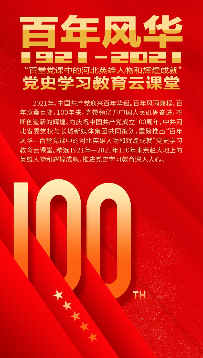 与长城新媒体集团联合主办、共同推出了“百年风华——百堂党课中的河北英雄人物和辉煌成就”党史学习教育云课堂。