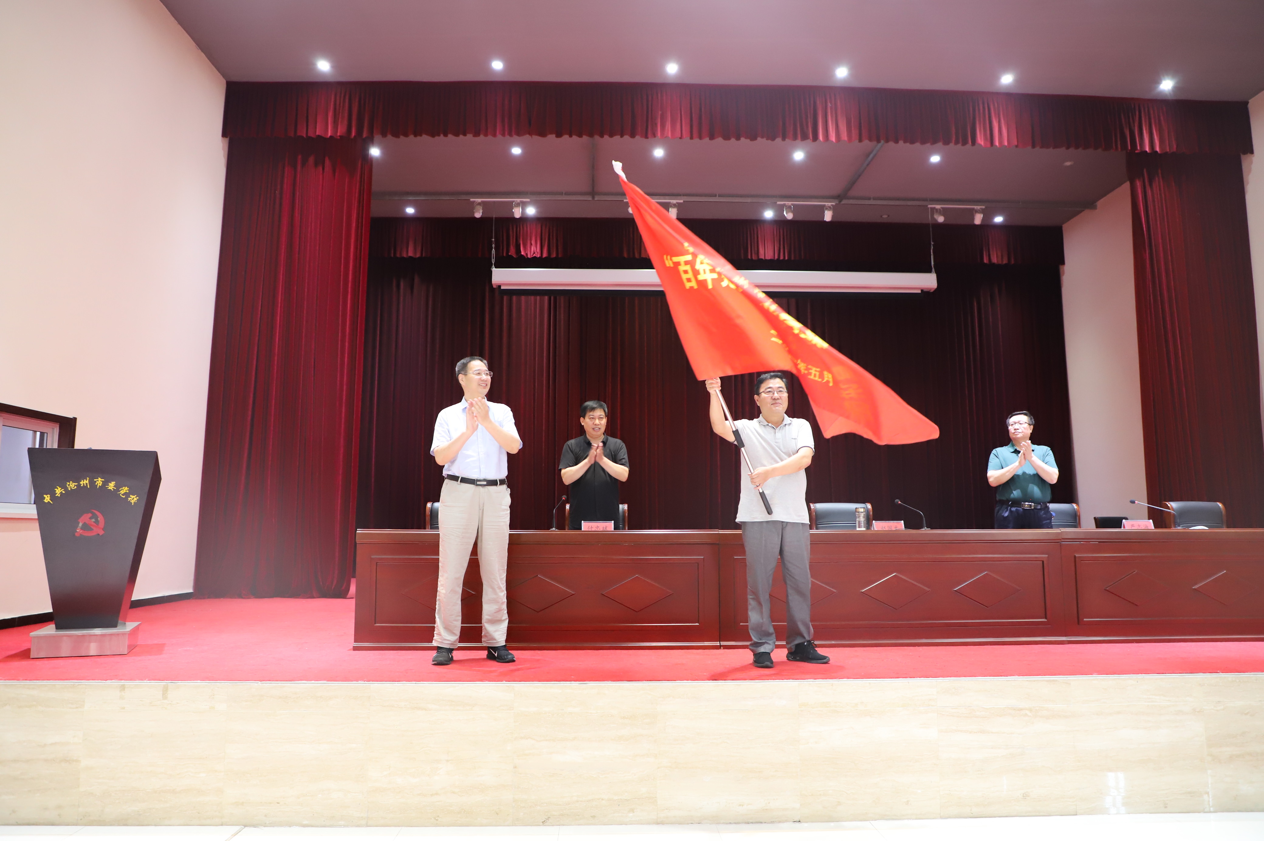 为深入贯彻落实中央和省、市委关于党史学习教育的决策部署,落实市委书记王景武关于把市委党校打造成党史学习教育重要阵地的工作要求,发挥市委党校理论宣讲优势,积极向校外提供教学资源,推动全市党史学习教育持续走深走实,6月11日,沧州市委党校举行“百年党史、百堂党课”宣讲活动启动仪式,党委书记、常务副校长赵国元同志出席仪式,为宣讲团授旗并作动员讲话。