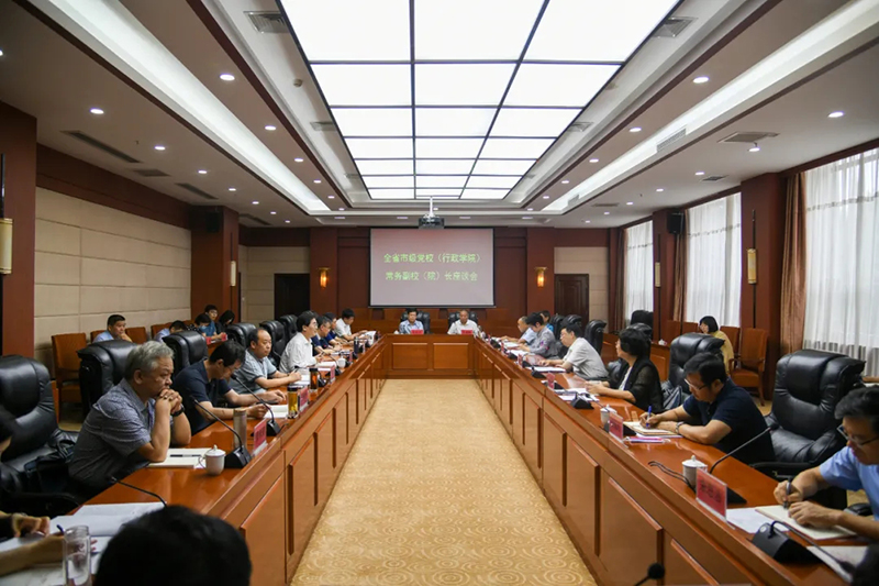7月20日下午,全省市级党校(行政学院)常务副校(院)长座谈会在省委党校(河北行政学院)举行。省委党校(河北行政学院)常务副校(院)长魏四海出席并讲话,围绕如何持续深入推进党史学习教育、如何贯彻落实党校姓党根本原则、如何加快推进一流党校建设三个主题,与大家进行了探讨交流。副校(院)长闻建波、李胜茹出席座谈。