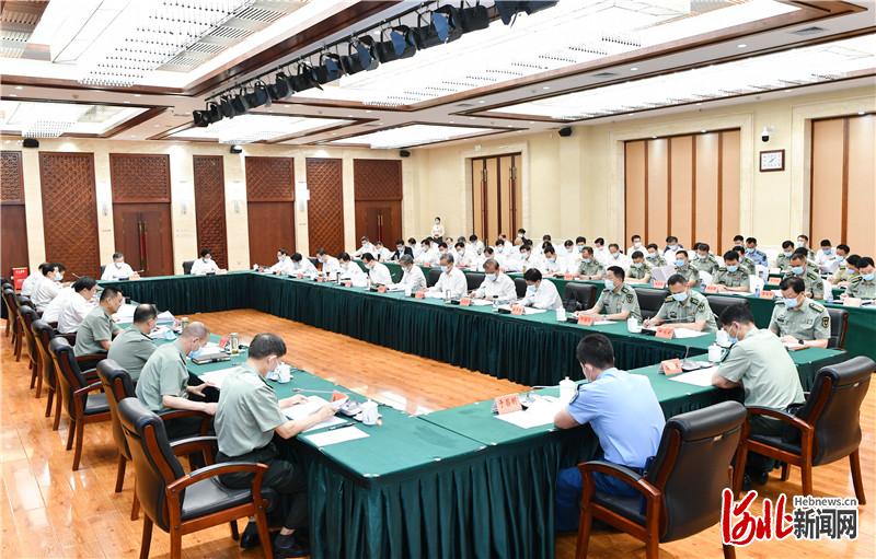 王东峰强调,要坚持传承和弘扬双拥共建的优良传统,进一步凝聚起国防动员建设的强大合力。要强化大局意识,认真落实市县党委特别是第一书记党管武装的政治责任,持续深化双拥共建工作,更好服务党和国家工作大局、国防和军队建设全局。要强化精细服务,带着责任和感情做好干部转业安置、家属随军就业、子女入学入托等工作,认真组织开展“八一”建军节前夕军人军属和退役军人走访慰问,扎实推进新一轮省级双拥模范城(县)创建活动,在全省营造尊重尊崇军人和退役军人的浓厚氛围。要强化协调联动,牢固树立“一盘棋”思想,加强对党管武装和双拥共建工作的督导考核考评,跟踪问效狠抓落实,齐心协力开创新时代全面建设经济强省、美丽河北新局面,为全面建成社会主义现代化强国和实现中华民族伟大复兴中国梦、强军梦贡献力量。