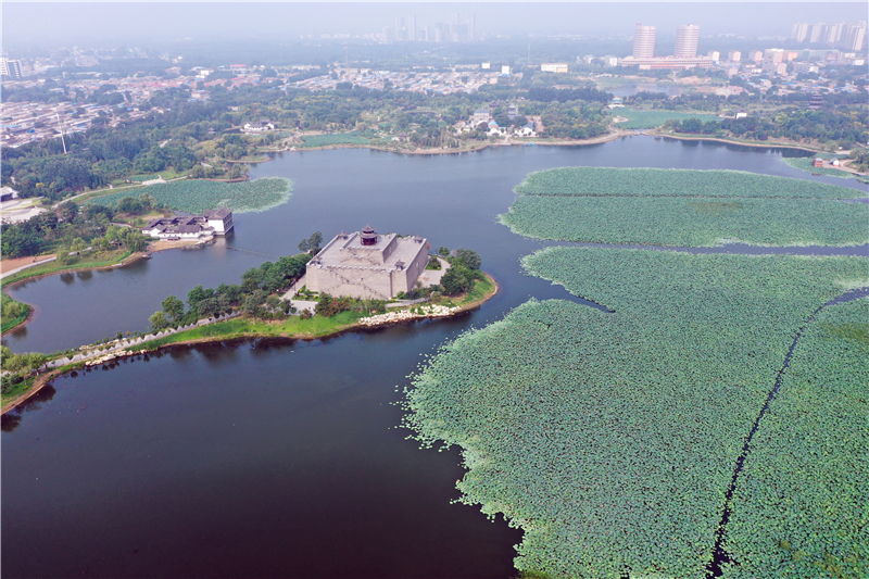 8月11日拍摄的河北省河间市瀛州公园景色(无人机照片)。新华社记者 骆学峰 摄