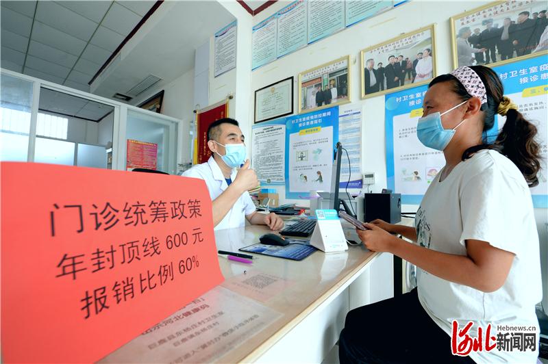 村民在巨鹿县巨鹿镇东杨庄村卫生室交费取药。 河北日报记者 杜柏桦摄