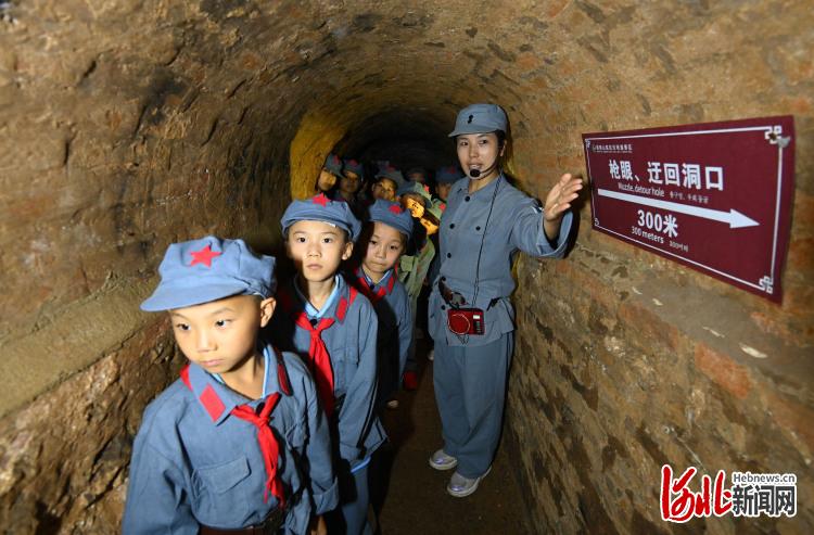 2021年9月2日,河北省邯郸市峰峰矿区王看小学的同学们在冀南山底抗日地道遗址参观。
