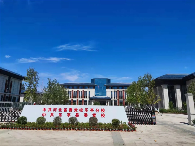 乐亭县委党校新址规划面积73.5亩。采用“学院派建筑风格”,与李大钊纪念馆等周边建筑风貌整体协调,朴实大方、简明庄重。一期建筑面积1.89万平方米,已于2021年6月投入使用,可容纳800人培训、400人就餐。二期工程也已启动规划设计。计划扩建宿舍楼、图书信息中心等设施。