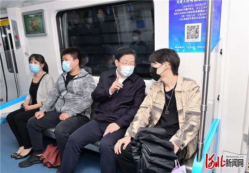 9月19日,在中华民族传统节日——中秋节即将到来之际,省委书记、省人大常委会主任王东峰在石家庄市走访慰问。这是王东峰在地铁上,与乘客一同乘坐、亲切交流。 河北日报记者赵威摄