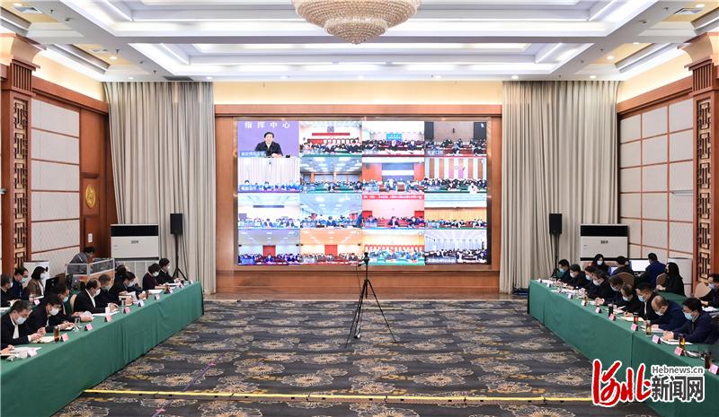 会议以视频会议形式召开。各市(含定州、辛集市)、雄安新区、各县(市、区)设分会场。省领导张超超、董仚生、高志立、刘爽、张政、张国华、刘凯、夏延军、葛海蛟、严鹏程、胡启生在主会场或分会场参加会议。(河北日报记者四建磊、吴韬)