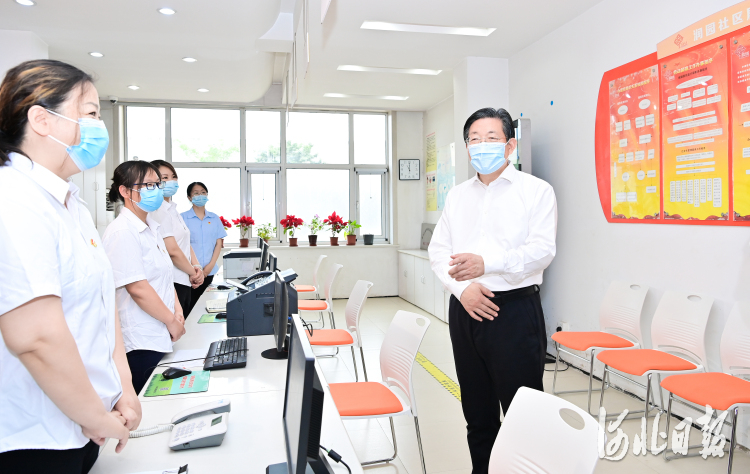 6月7日上午,省委书记、省人大常委会主任王东峰在石家庄市调研检查。这是王东峰在裕华区建华南街道润园社区,认真听取“红管家”服务品牌情况汇报,实地察看“红色物业”和一站式服务大厅等工作情况。河北日报记者赵威摄