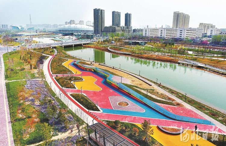 航拍衡水市吴公渠生态公园。今年,吴公渠生态修复整治工程列入了“学史力行为民解忧——我为群众办实事”实践活动项目清单。目前,吴公渠两岸一派生机盎然,周边生态环境彻底改善。河北日报记者焦磊摄