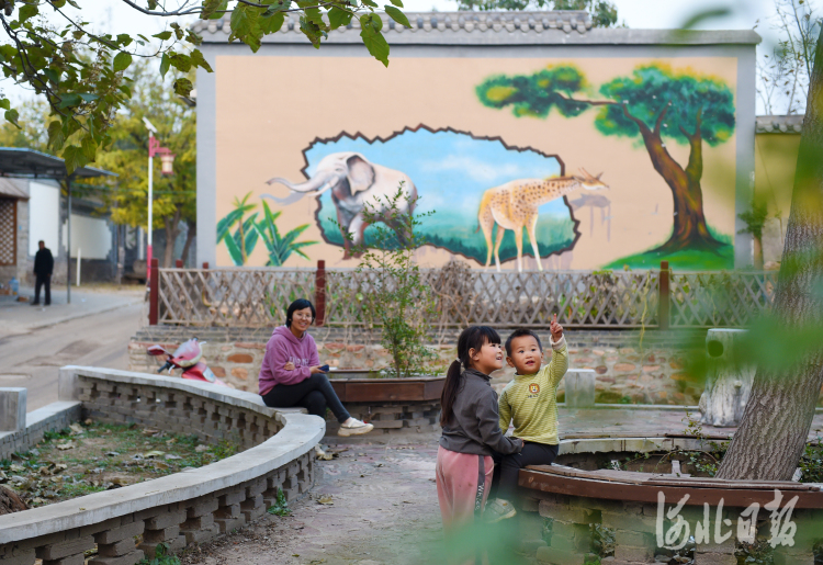 10月30日,临城县西竖镇程阳村村民带孩子在村里的小游园休闲玩耍。 河北日报记者赵永辉摄