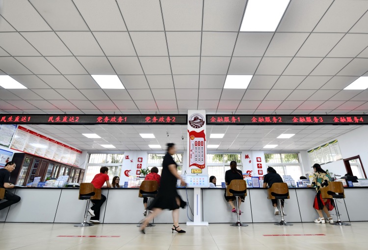 7月22日,居民在河北省迁安市兴安街道明珠社区综合服务站内办理业务。 新华社记者牟宇摄