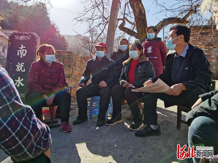 2021年11月25日,在河北省邢台市信都区白岸乡南就水村军工厂旧址前,“小马扎”宣讲员为当地群众宣讲党的十九届六中全会精神。位于太行山深处的邢台市信都区白岸乡南就水村,曾是八路军总部军工部子弹厂所在地。通讯员黄涛摄影报道