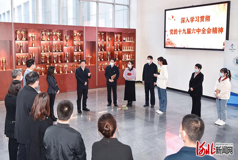 宣讲后,王东峰还观看了河北师范大学体育学院冰雪球体育训练。
