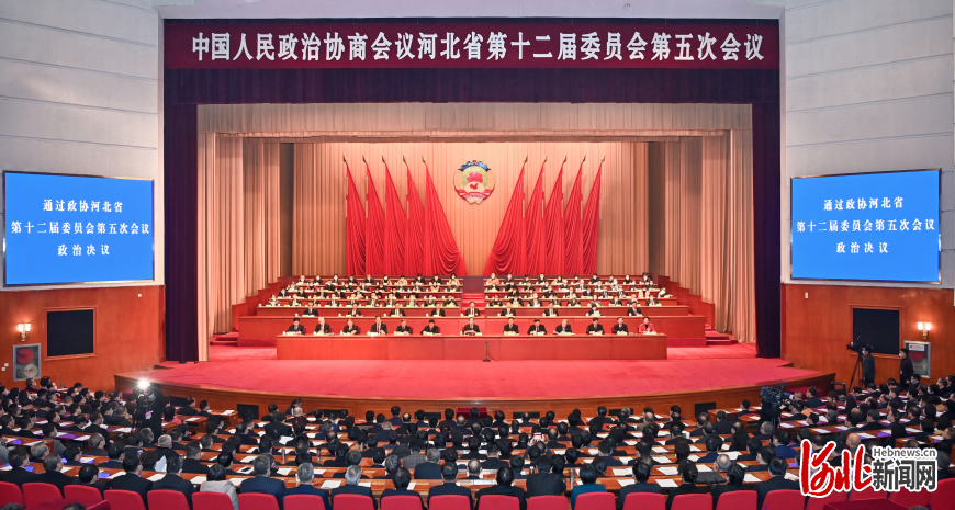 1月19日,政协河北省第十二届委员会第五次会议圆满完成各项议程,在石家庄河北会堂闭幕。会议号召,全省各级政协组织、政协各参加单位和全体政协委员,更加紧密地团结在以习近平同志为核心的中共中央周围,坚持以习近平新时代中国特色社会主义思想为指导,在中共河北省委坚强领导下,踔厉奋发、勇毅前行,为加快建设现代化经济强省、美丽河北作出新的更大贡献,以优异成绩迎接党的二十大胜利召开。