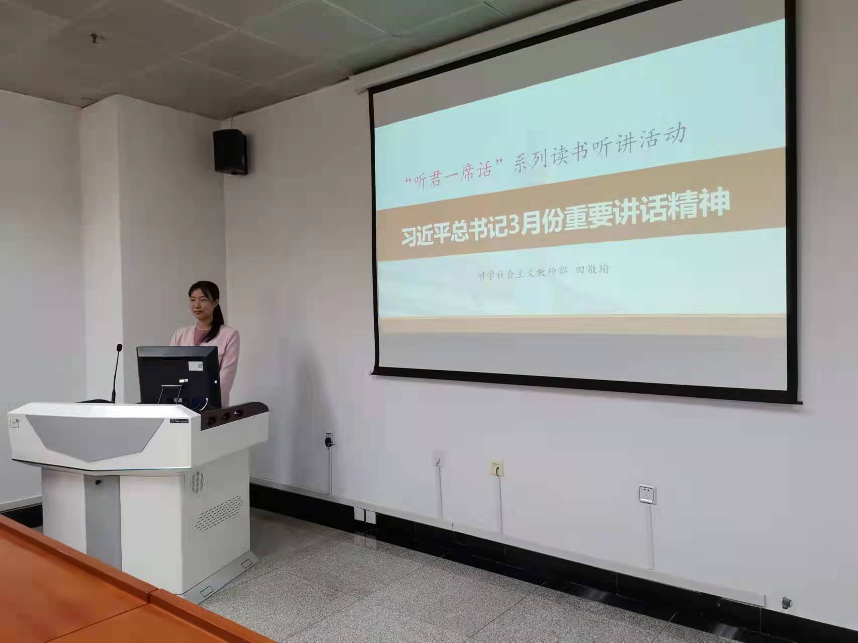 4月11日下午,科学社会主义教研部举行了2022年第2期“听君一席话”系列读书听讲活动。教师田敬瑜带领大家梳理学习了习近平总书记今年3月份的重要讲话精神,围绕习近平总书记在2022年春季学期中央党校(国家行政学院)中青年干部培训班开班式上的重要讲话精神,以及在全国两会上作出的“五个必由之路”“五个战略性有利条件”等重要论断进行了系统深入解读。