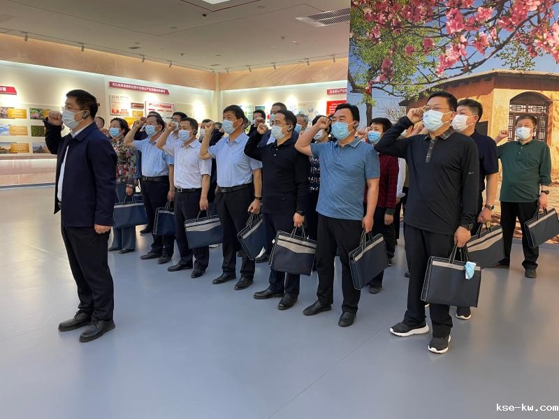 ↑ 图为党日活动之后,学员们在党旗前重温入党誓词。
