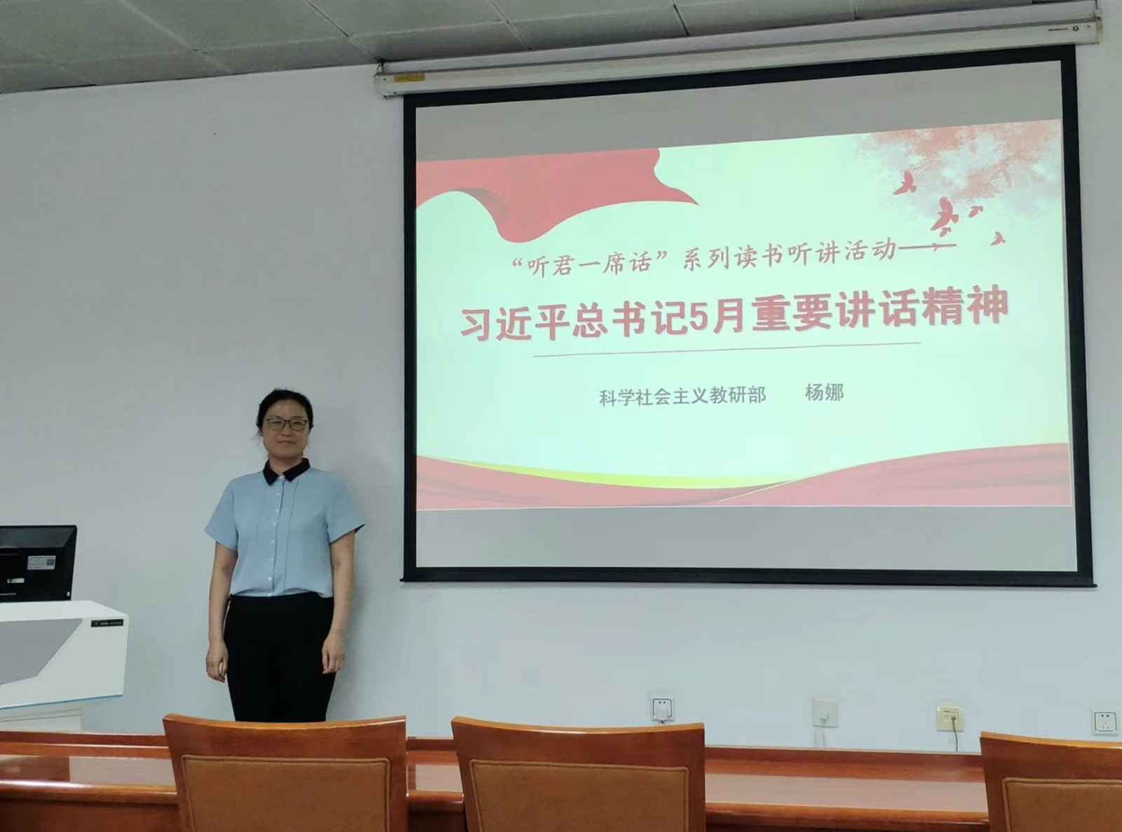 6月14日下午,科学社会主义教研部举行了2022年第4期“听君一席话”系列读书听讲活动。教师杨娜带领大家梳理学习了习近平总书记今年5月份的重要讲话精神,并就《加快建设科技强国,实现高水平科技自立自强》《正确认识和把握我国发展重大理论和实践问题》两篇重要文章进行了深入解读。