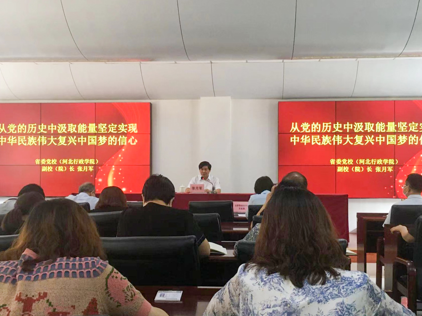 6月16日下午,省委党校(河北行政学院)副校(院)长张月军以“从党的历史中汲取能量,坚定实现中华民族伟大复兴中国梦的信心”为题,在南校区为分管部门集中讲授党课。
