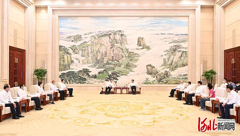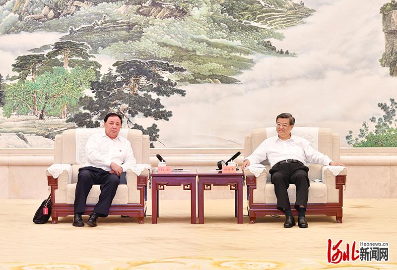 6月29日下午,省委书记倪岳峰在石家庄与新疆维吾尔自治区人大常委会党组书记、主任肖开提·依明座谈。 河北日报记者赵海江摄