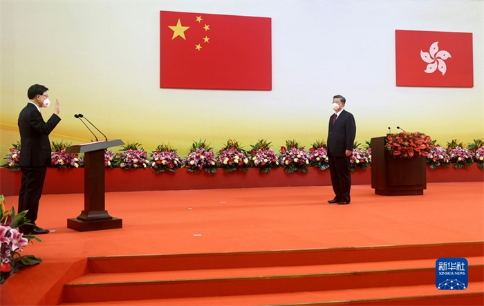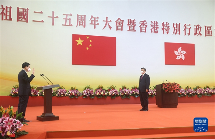 新华社香港7月1日电(记者陈键兴 朱基钗 赵博)庆祝香港回归祖国25周年大会暨香港特别行政区第六届政府就职典礼1日上午在香港会展中心隆重举行。中共中央总书记、国家主席、中央军委主席习近平出席并发表重要讲话。他强调,25年来,在祖国全力支持下,在香港特别行政区政府和社会各界共同努力下,“一国两制”实践在香港取得举世公认的成功。“一国两制”是经过实践反复检验了的,符合国家、民族根本利益,符合香港、澳门根本利益,得到14亿多祖国人民鼎力支持,得到香港、澳门居民一致拥护,也得到国际社会普遍赞同。这样的好制度,没有任何理由改变,必须长期坚持。