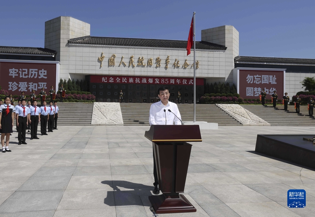 7月7日上午,纪念全民族抗战爆发85周年仪式在中国人民抗日战争纪念馆举行。中共中央政治局常委、中央书记处书记王沪宁出席仪式并讲话。新华社记者 刘卫兵 摄