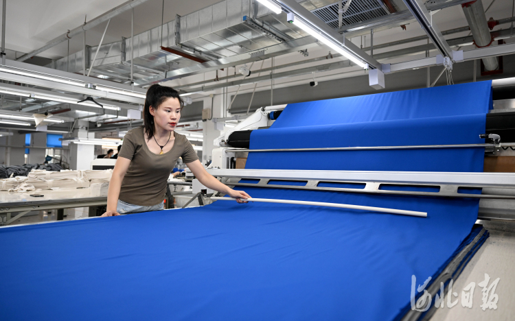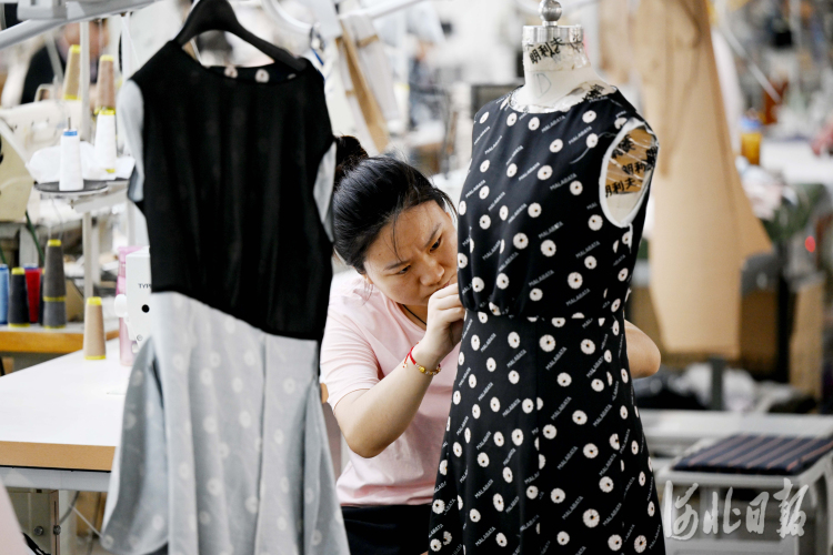 2022年7月11日,工人在沧州明珠国际服装生态新城一家服装生产企业内工作。近年来,沧州市把握京津冀协同发展机遇,积极承接京津产业转移,在盐碱荒滩上规划建设沧州明珠国际服装生态新城,打造集工业生产、服装博览与销售、文化旅游、休闲娱乐等功能于一体的服装旅游综合体。目前,沧州明珠国际服装生态新城已吸引600余家北京服装服饰生产加工企业落户。 河北日报记者张昊摄
