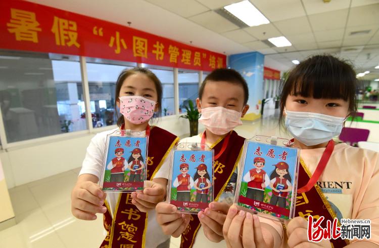 2022年7月12日,在河北省邯郸市图书馆,小图书管理员持“证”上岗。当日,河北省邯郸市图书馆组织开展“我当小图书管理员”社会实践活动。暑假期间,参与活动的小学生经过报名、培训、实习等环节,走上“工作岗位”。小图书管理员在体验少儿图书馆的工作、服务更多小读者的同时,丰富自己的生活经历,在书香中度过一个丰富多彩的假期。 通讯员郝群英摄