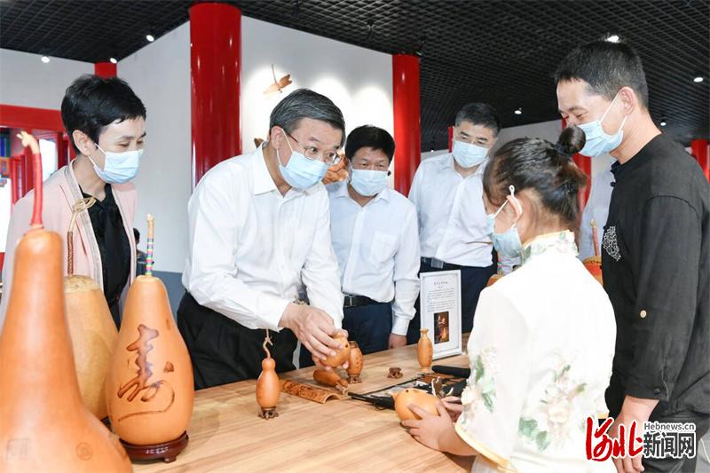 近日,省委书记倪岳峰在沧州市调研。这是倪岳峰认真了解沧州非物质文化遗产传承发展情况。 河北日报记者赵海江摄