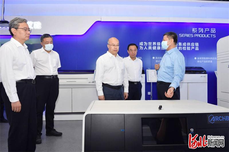 7月15日至17日,省长王正谱在唐山市调研。这是王正谱来到英诺特(唐山)生物技术公司,了解产品研发、市场应用情况。河北日报记者霍艳恩摄