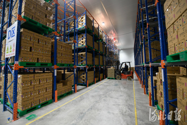 7月16日,在丰宁满族自治县朴诚乳业承德有限公司低温仓库,工人在搬运低温乳制品。河北日报记者田明摄
