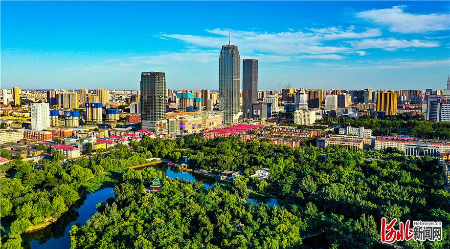 蓝天白云下的保定城区。 河北日报记者耿辉摄