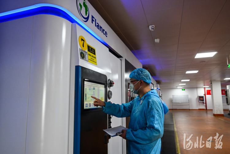 工人在河北复朗施纳米科技有限公司生产车间内巡检。定州抢抓京津冀协同发展重大机遇,深度对接北京科技创新资源,目前已引进了纳米仿生涂层、新羿新冠试剂盒等31个项目。
