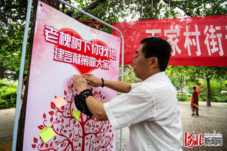 为调动居民参与老旧小区改造的积极性,更好的服务社区居民,提高小区居民的生活质量,复兴区百家村街道在钢三社区百五小区开办了“老槐树下话家常”百姓议事角,充分听取居民对街道和社区的改造发展提出的金点子好建议。每周一次,每次都有两名街道负责人“坐阵”。继上周开办以来,居民反响强烈。街道工作人员把居民提出的意见和建议整理在册,作为下步工作的依据和参考。通讯员聂长青摄