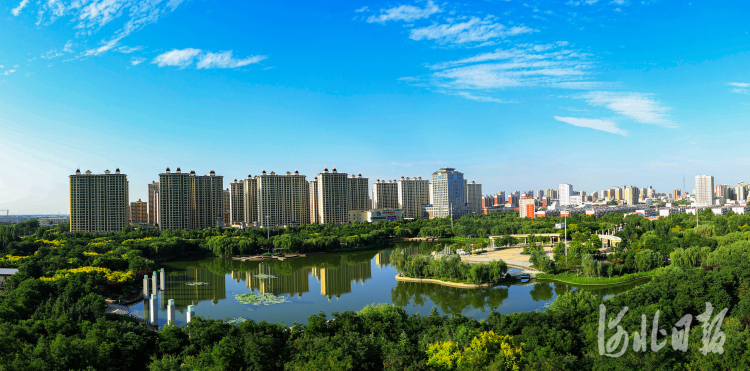 鸟瞰瑞泽湖公园。辛集市加快推进城市公园、湿地公园、绿廊绿道等建设改造提升,全面增加城市绿量。