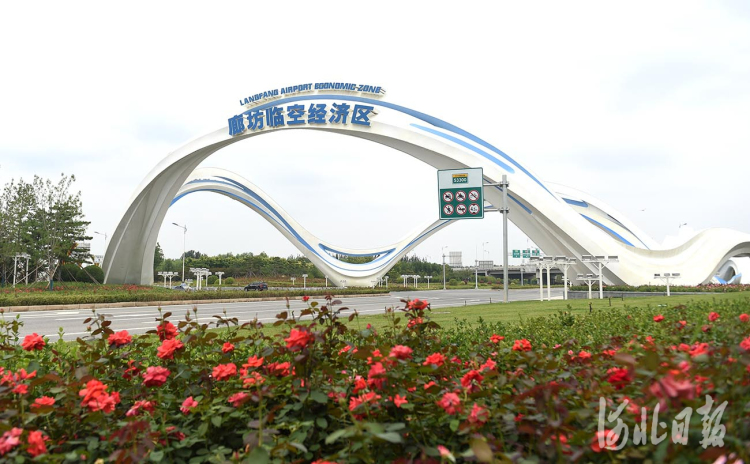 近日拍摄的廊坊临空经济区临空之门及周边景观。