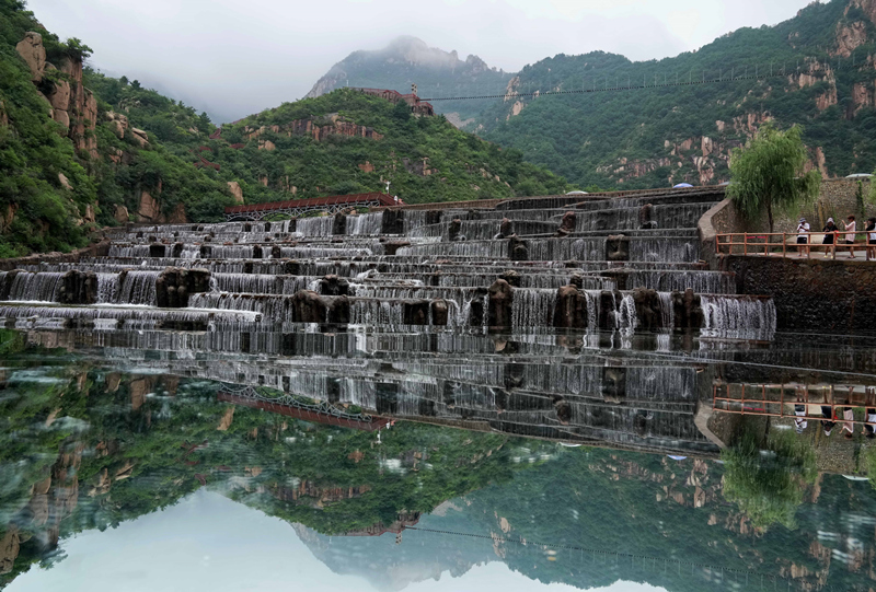 8月7日,游客在秦皇岛市抚宁区冰糖峪景区游览。新华社记者杨世尧摄