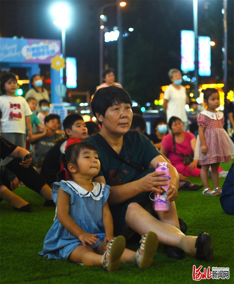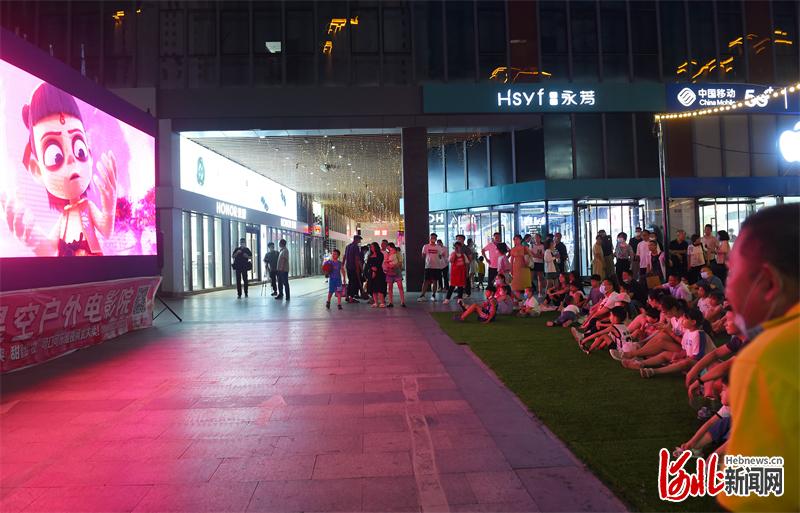 市民在邢台市襄都区天一广场看电影。河北日报记者赵永辉摄