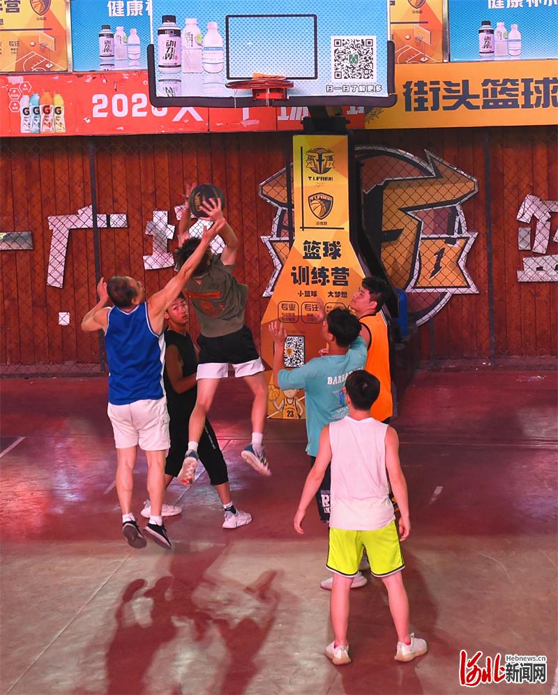 市民在邢台市襄都区天一广场下沉式篮球场打球健身。河北日报记者赵永辉摄