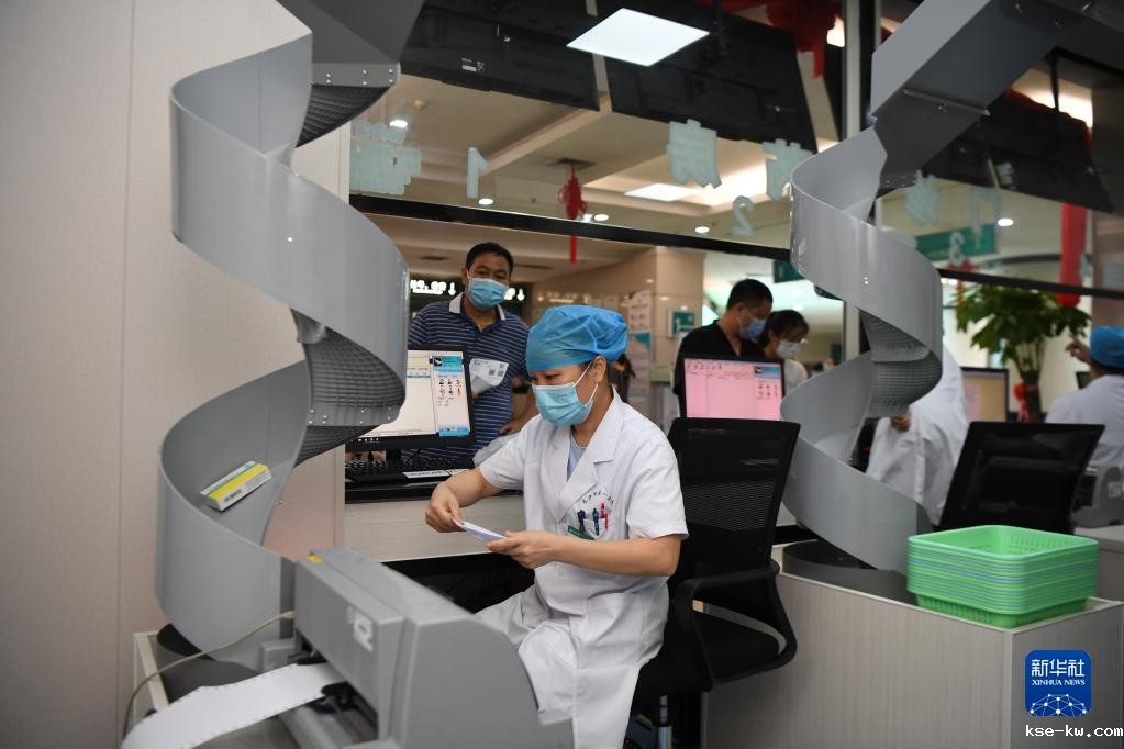 2021年8月11日,医务人员在湖南省长沙市第一医院门诊智慧药房为患者发放药物。新华社记者 薛宇舸 摄