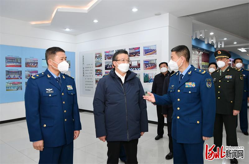 在新春佳节即将到来之际,省委书记、省人大常委会主任倪岳峰到驻冀部队和省军区走访慰问。这是倪岳峰在空军石家庄飞行学院看望慰问广大官兵,深入了解部队建设和训练情况。 河北日报记者赵海江摄