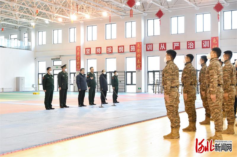 在新春佳节即将到来之际,省委书记、省人大常委会主任倪岳峰到驻冀部队和省军区走访慰问。这是倪岳峰在武警某部看望慰问广大官兵,深入了解部队建设和训练情况。 河北日报记者赵海江摄