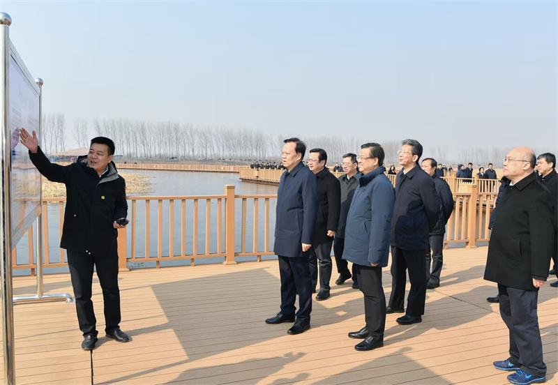 2月16日,天津市党政代表团到雄安新区考察。这是天津市党政代表团在白洋淀听取白洋淀生态环境保护和治理情况介绍。 河北日报记者赵海江摄