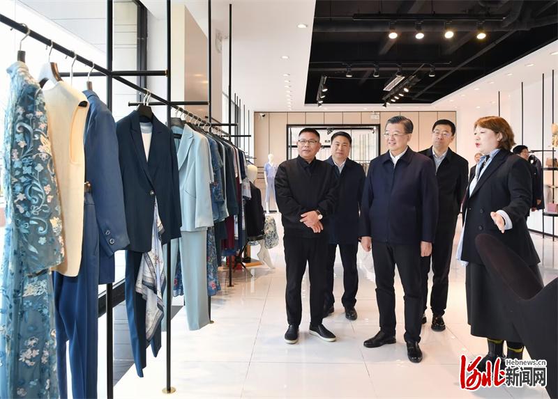 3月20日,省委书记、省人大常委会主任倪岳峰在邢台南宫市鸿熙服装股份有限公司调研。 河北日报记者赵海江摄